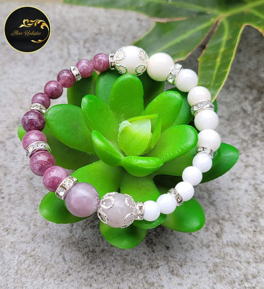 Bracelet INFINITUDE en lépidolite, tourmaline rose et jade blanc